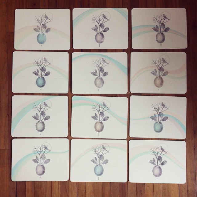 12 individuales de 30x40cm cada uno. Pieza única pintada a mano.